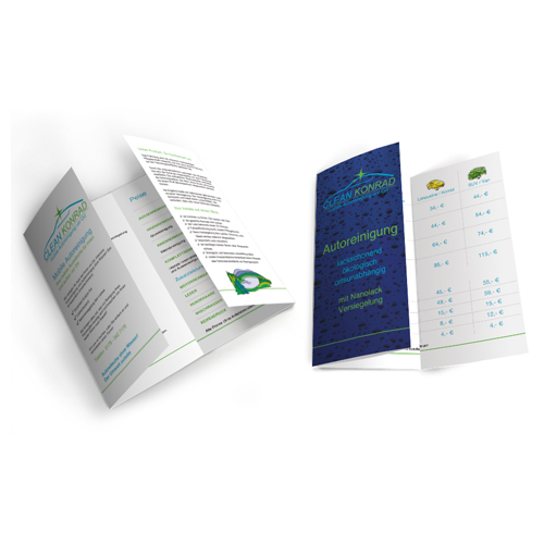 Ein besonders interessantes Format ist der 8-seitige Flyer im Altarfalz. Hier stehen Ihnen zahlreiche Möglichkeiten offen: ein- oder beidseitiger Druck,